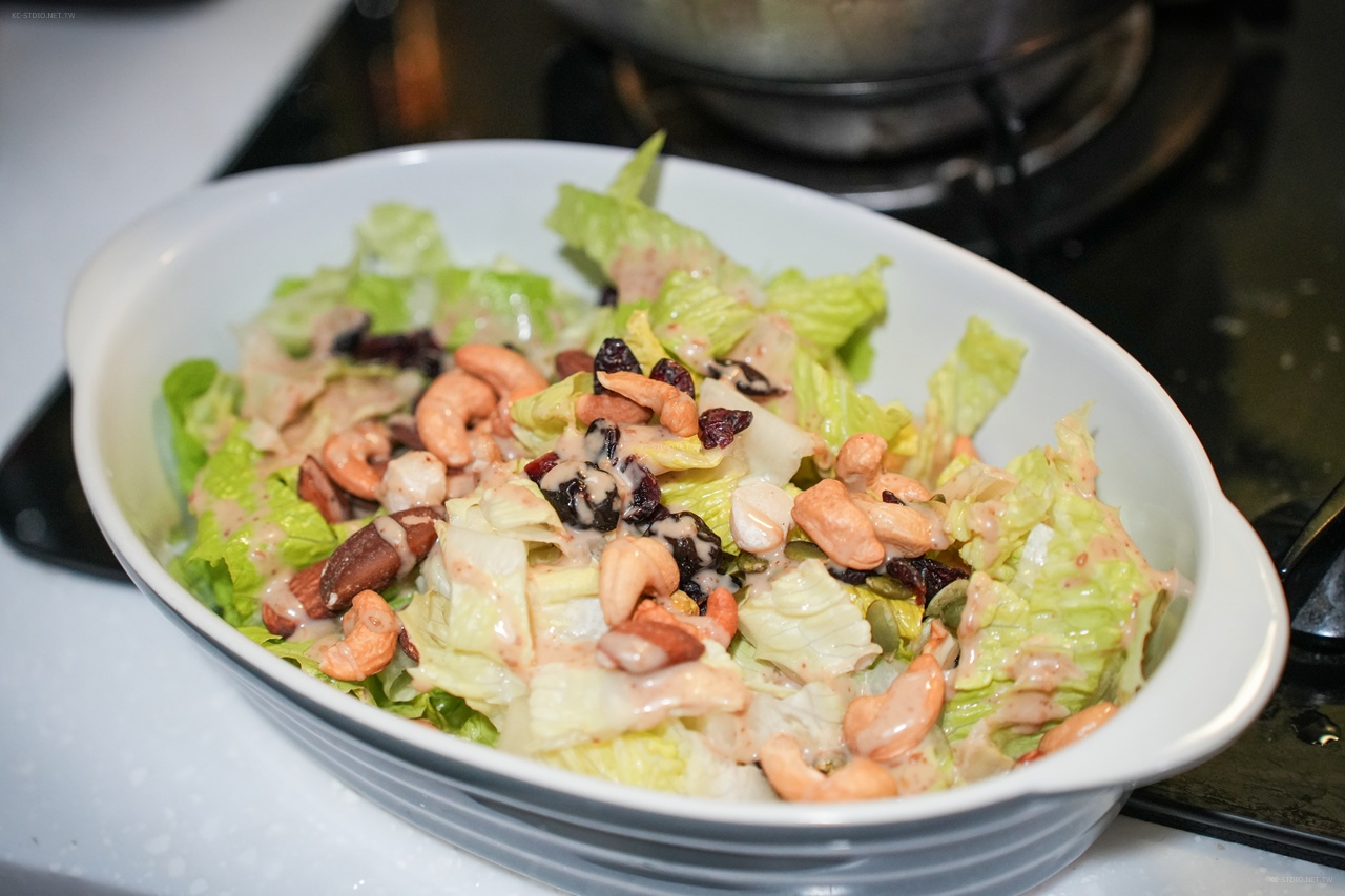 倒點堅果 再加沙拉醬,灑點起司粉…. 吃起來也還不錯