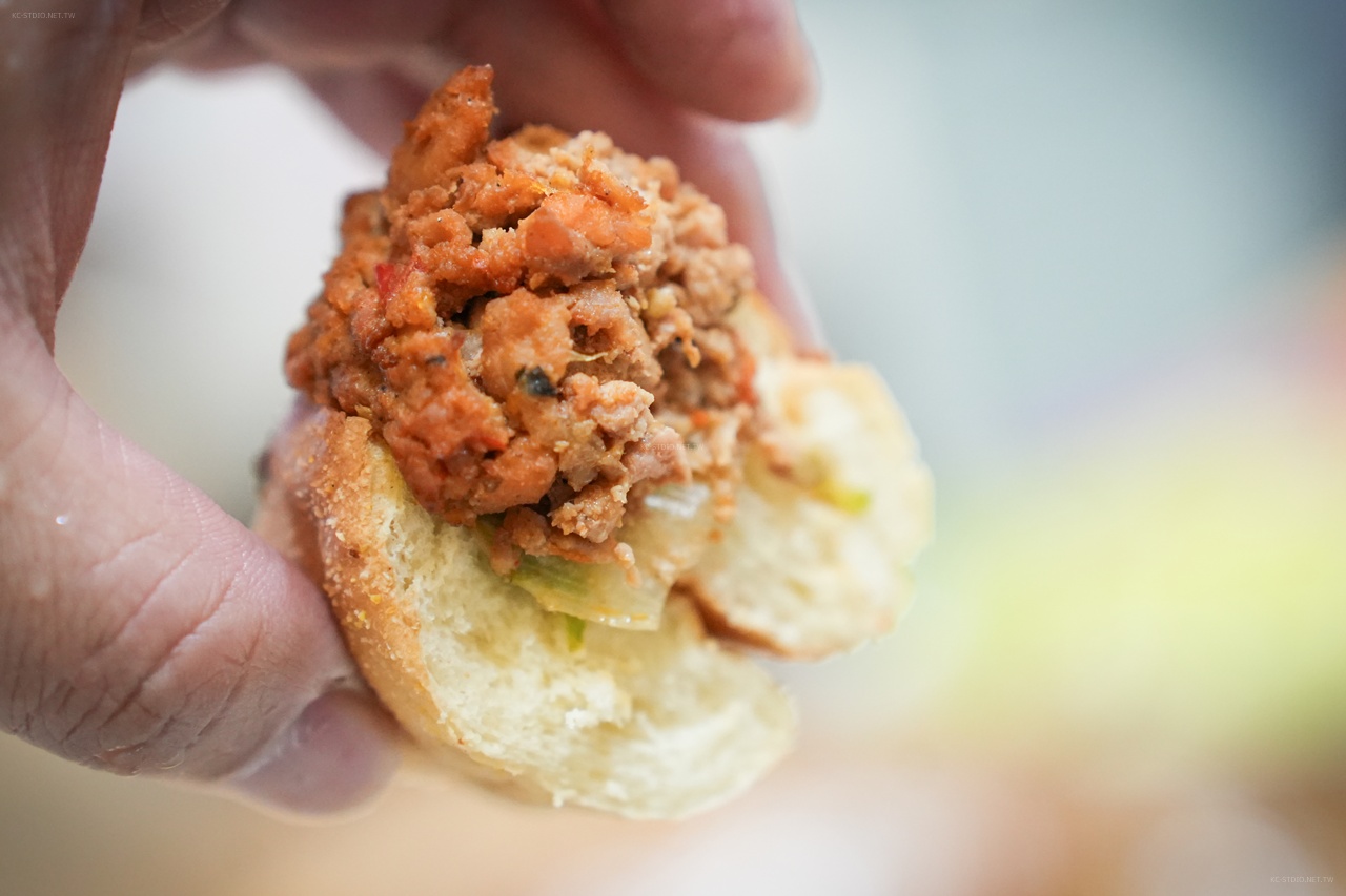 完全不知道在吃啥…. (吃肉燥潛艇堡??)