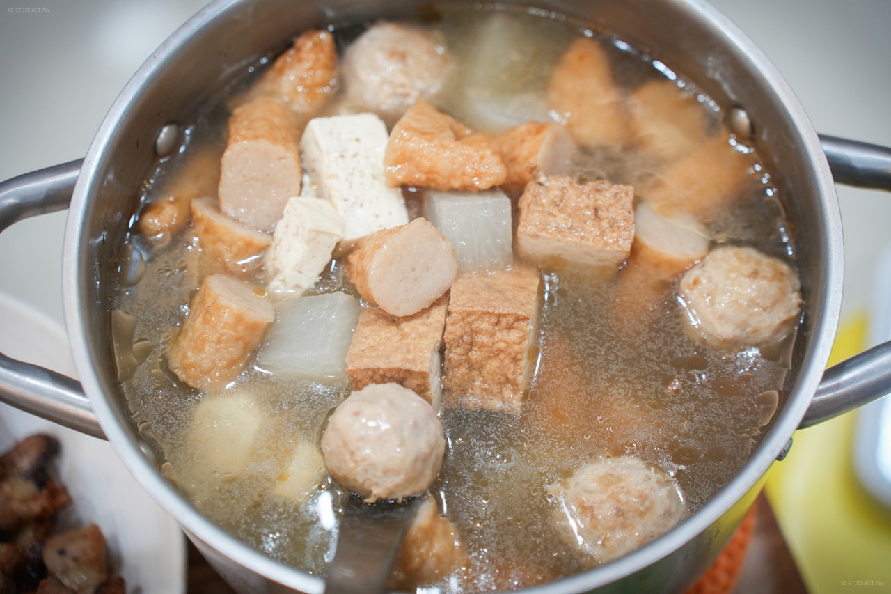 我大概算一下食材成本 白蘿蔔一根45+黑輪69+豆腐30+貢丸30…我進位算200好了…