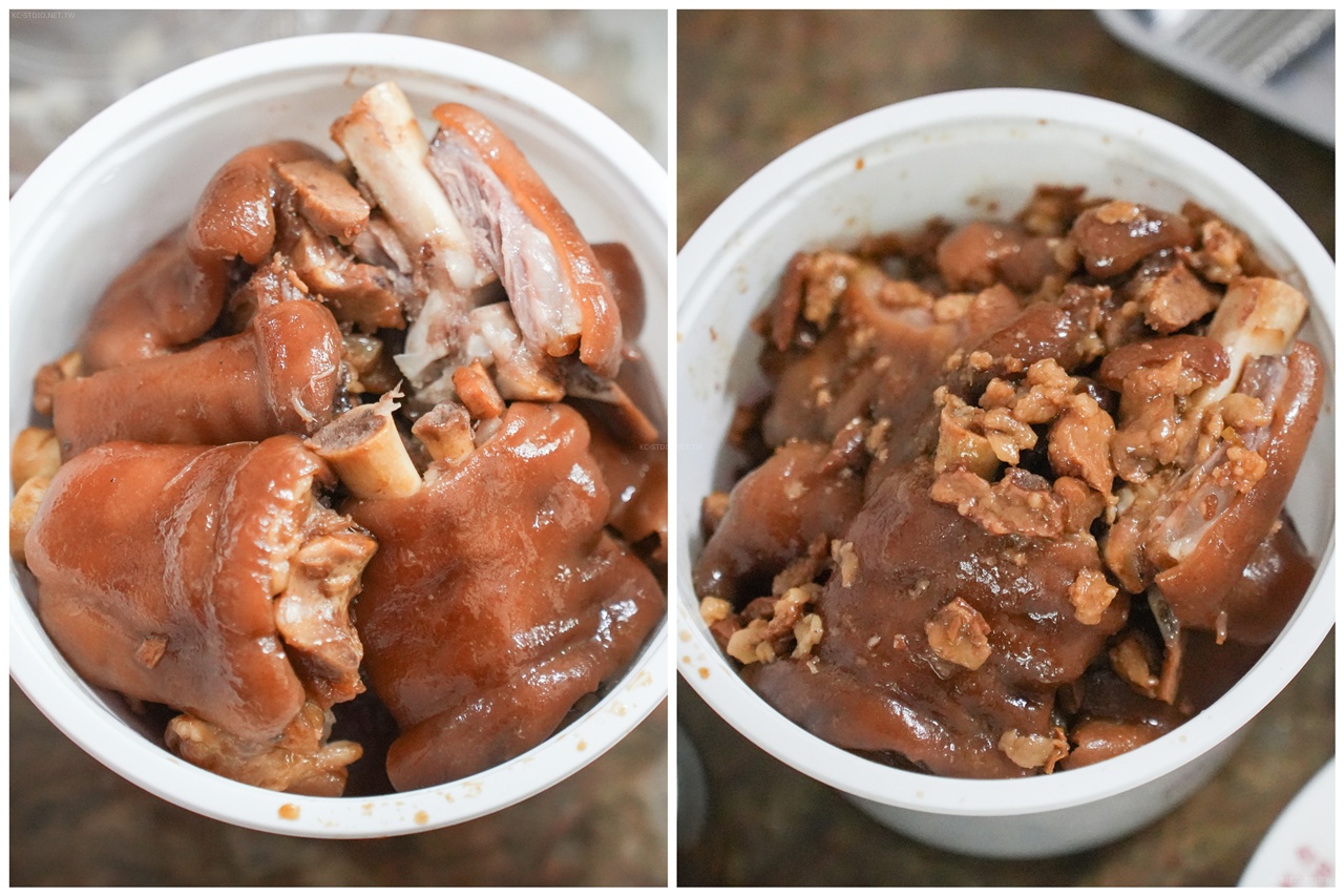 內容物有豬腳一盅(不確定有幾塊) + 魯肉燥一包 + 麵線10束,