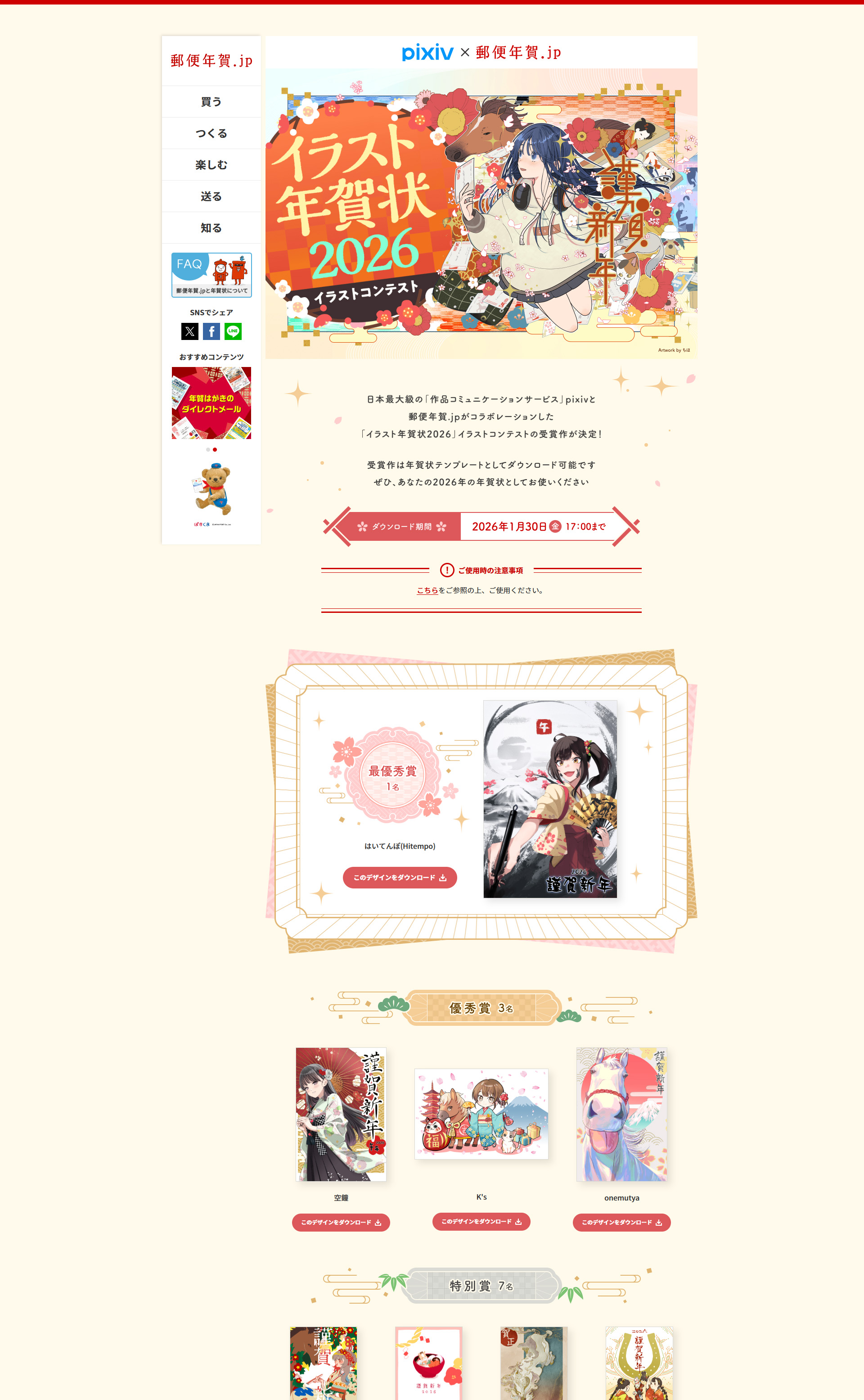 [繪圖]郵便年賀.jp「イラスト年賀状2026」優秀賞,日本郵便2026賀年卡比賽心得